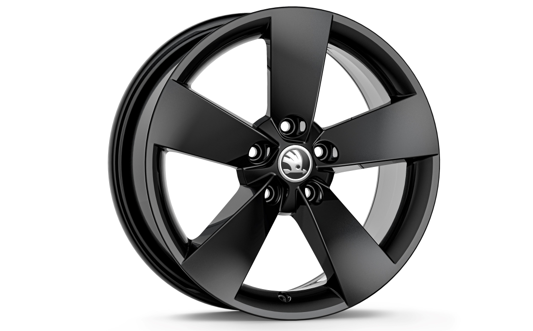 The alloy wheels are designed to have a good weight distribution. This has a positive effect on reducing the centrifugal force. This results in improved acceleration and deceleration dynamics. Due to the reduction in the unsprung mass, the wheels improve the vehicle‘s handling. These feature an integral design and are produced by casting aluminium alloy, after which an extremely hard, heat-resistant coating is applied. Check the documentation to see whether the wheels can be used on your vehicle. Any dirt sticking to the alloy wheels can be easily removed using a special cleaning agent from the Škoda Genuine Accessories range.