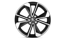 The alloy wheels are designed to have a good weight distribution. This has a positive effect on reducing the centrifugal force. This results in improved acceleration and deceleration dynamics. Due to the reduction in the unsprung mass, the wheels improve the vehicle‘s handling. These feature an integral design and are produced by casting aluminium alloy, after which an extremely hard, heat-resistant coating is applied. Check the documentation to see whether the wheels can be used on your vehicle. Any dirt sticking to the alloy wheels can be easily removed using a special cleaning agent from the Škoda Genuine Accessories range.