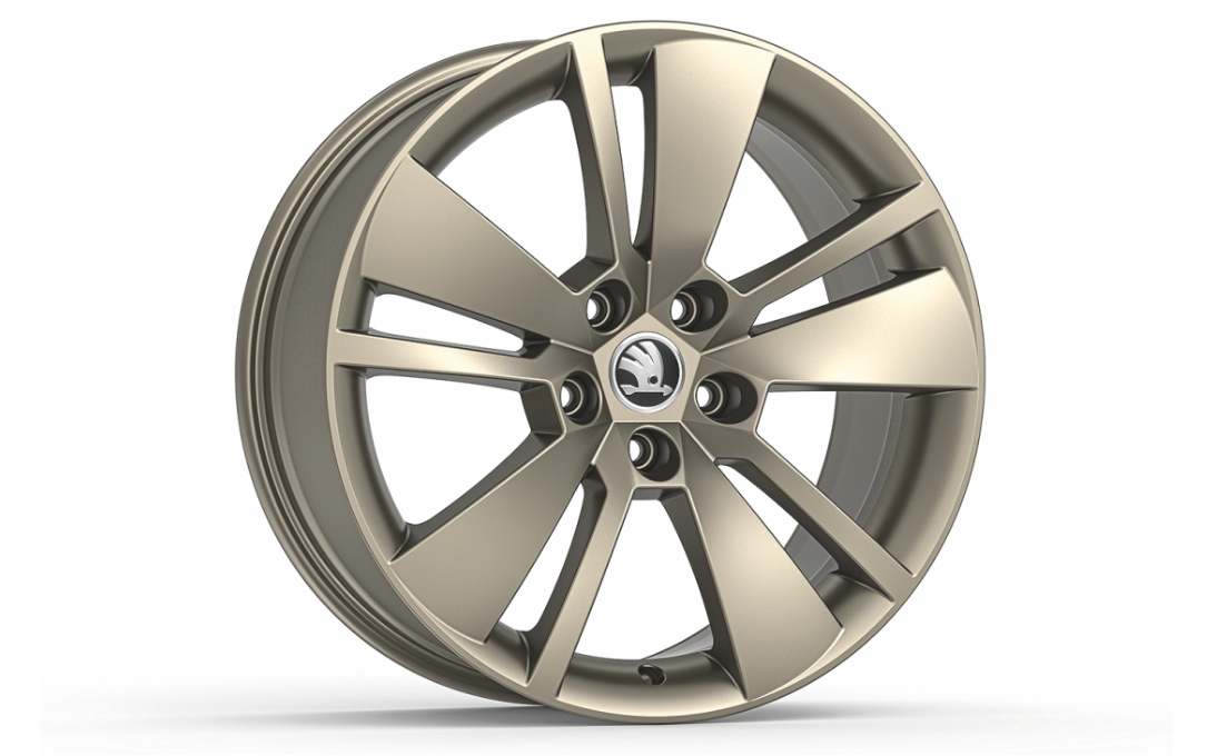 The alloy wheels are designed to have a good weight distribution. This has a positive effect on reducing the centrifugal force. This results in improved acceleration and deceleration dynamics. Due to the reduction in the unsprung mass, the wheels improve the vehicle‘s handling. These feature an integral design and are produced by casting aluminium alloy, after which an extremely hard, heat-resistant coating is applied. Check the documentation to see whether the wheels can be used on your vehicle. Any dirt sticking to the alloy wheels can be easily removed using a special cleaning agent from the Škoda Genuine Accessories range.