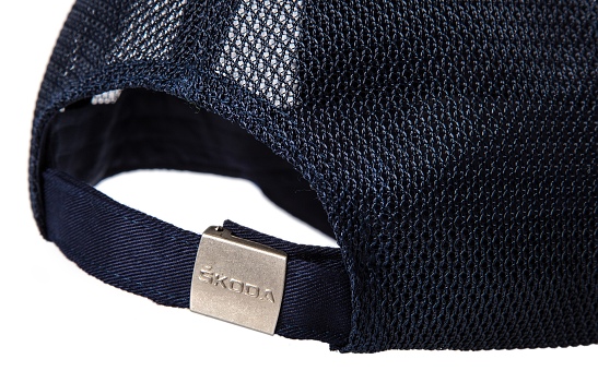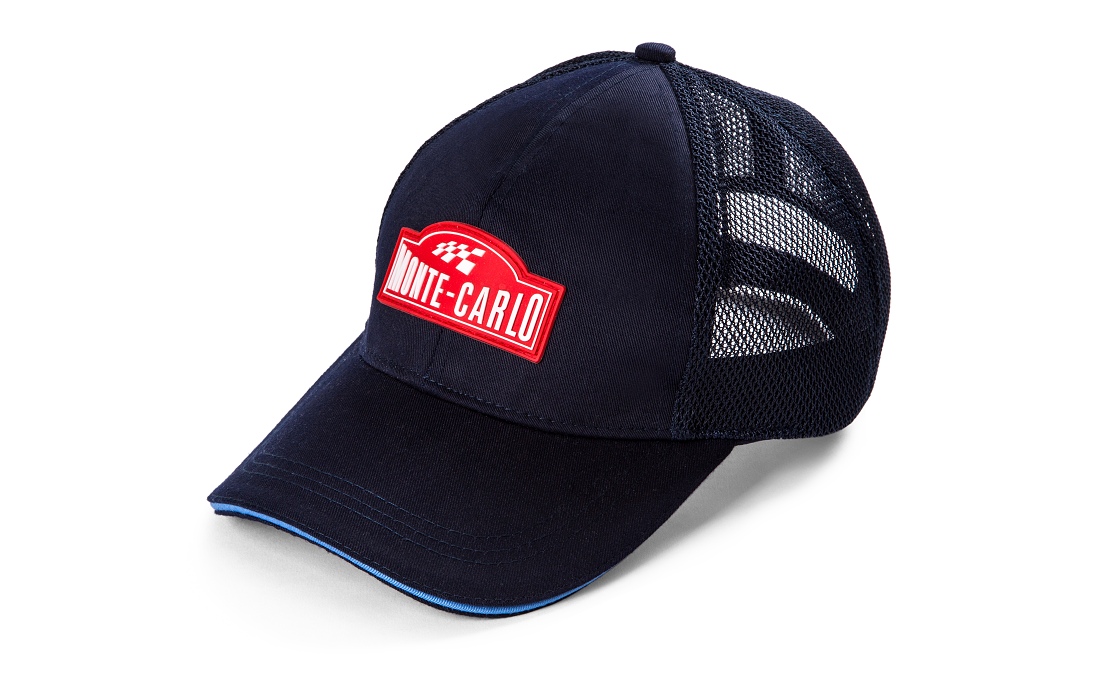 Dark blue unisex baseball cap with red logo Monte-Carlo. Cut with 6 panels, belt for regualtion of the size with a metal buckle with embossed logo ŠKODA. Sandwich piping in light blue colour. Patch wit… Read more