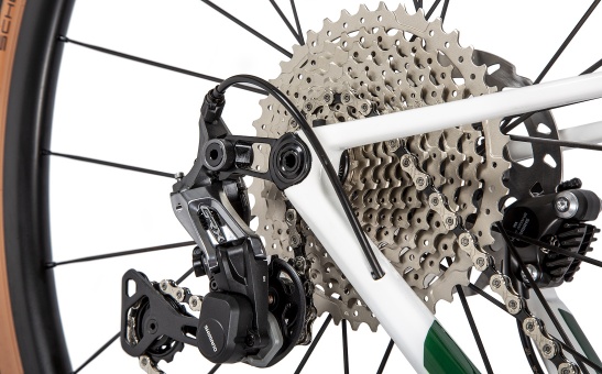 The drivetrain is handled by a Shimano GRX 1x11 groupset. In addition to the carbon fork, comfort is guaranteed by the lightweight DT Swiss braided wheels or the carbon seatpost with Selle Royal Flex saddle.