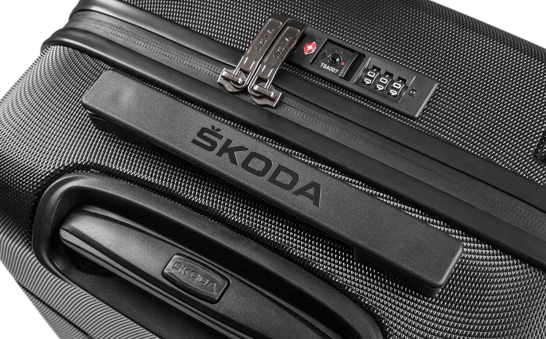Hard-Case trolley with 4 wheels, ergonomic carry handles and recessed TSA lock for greater safety of your personal belongings while traveling. The design of the hard-shell is inspired by the typical angled and cubistic shapes that ŠKODA is known for. The interior provides lots of features such as adjustable cross packing straps, 1 large mesh pocket for laundry as well as 2 smaller zip pockets. The forest green lining comes in an individual ŠKODA design. This cabin bag fulfills the IATA guidelines (International Air Transport Association).