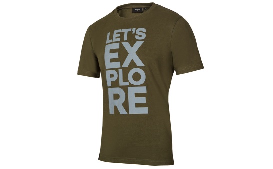Explore the world in style – this men’s T-shirt in modern khaki with a bold LET'S EXPLORE print on the front is the perfect choice for all men who love adventure – in the city and in the great outdoors.