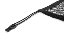 The netting system from the Škoda Original Accessories range is both a practical and attractive addition to the luggage compartment. It is de¬signed to secure transported items or luggage and prevents them from sliding around when the vehicle is on the move, thereby also preventing any damage. Securing larger items using a floor net also increases the safety of vehicle passengers, and prevents the vehicle‘s centre of gravity from shifting when manoeuvring sharply. The nets are fitted by hooking them onto the lashing eyes and hooks in the luggage compartment. The elastic material has undergone strength tests and is designed to hold items weighing up to 1.5 kg. To avoid causing damage to the netting ma¬terial, do not store items with sharp edges or hook-and-loop fasteners in the net.