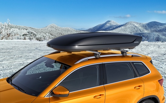 The black roof box from the Škoda Original accessories range with double-sided opening function allows you to load everything you might need on your travels - thanks to an internal capacity of 400 litres. This aerofriendly box in the stylish black colour fits any Škoda car. You can load it with up to 6 pairs of skis up to 187 cm in length, one of which can be up to 200 cm long. And up to 5 snowboards can be stored.