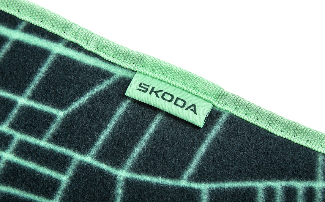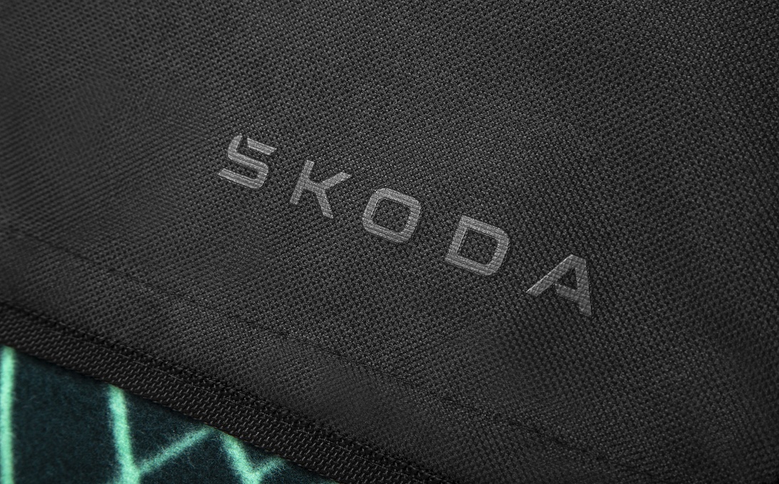 Black flap with a minimalist tone-on-tone Škoda logo.