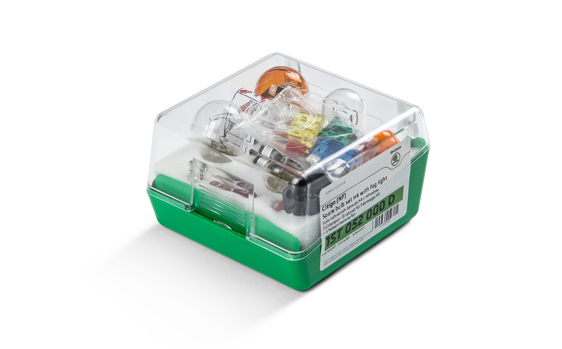 When it comes to road safety, the well-known saying „See and be seen“ is all the more important given the large volumes of traffic on the roads today. The vehicle‘s exterior lights must be fully functional at all times. The vehicle must be visible on the road in all weather conditions. Any faults must be rectified immediately, if possible. For this reason, drivers are obliged to carry a spare bulb set in the vehicle. The model-specific spare bulb set required to ensure that the vehicle has fully functional exterior lights is available from the ŠKODA Genuine Accessories range. The light bulbs included in the set are the same as the light bulbs fitted to the vehicle as standard. The light bulbs and fuses are kept in the lockable plastic case with the transparent lid. This is stored in the toolbox in the vehicle‘s luggage compartment. If there is no space available in the toolbox, the light bulb case can be stowed in the netting system. When changing a light bulb or fuse, make sure that the bulb is seated correctly in the fitting for the corresponding headlight or rear lights and/or that the fuse is inserted correctly into the corresponding connection point in the fuse holder.