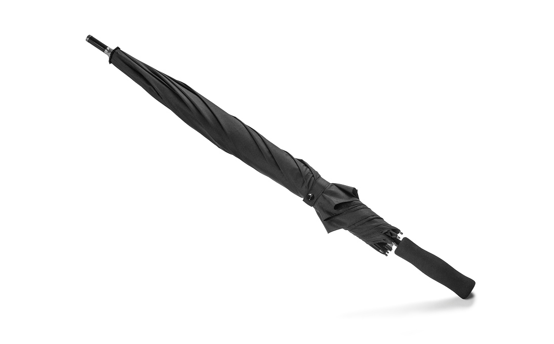 The elegant black umbrella with grey ŠKODA lettering has a fashionably placed branding made with Aquaprint technology on one part. This branding becomes visible when rains. Umbrella has foam handle and metal tip.
