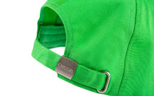 Green unisex baseball cap with green 3D Škoda logo print on the front left handside with green tape on the back. White sandwich piping.